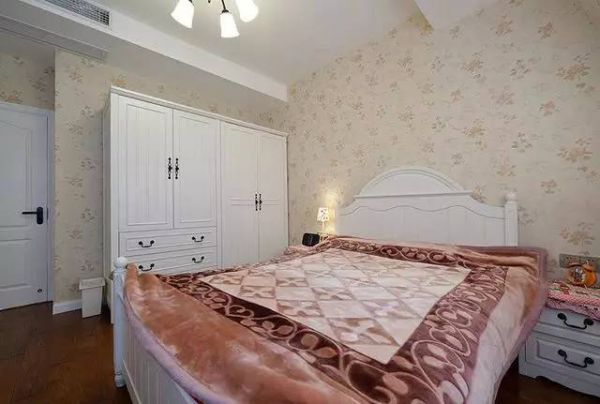 主卧则选择了淡橘色的壁纸,犹如暖暖的阳光。