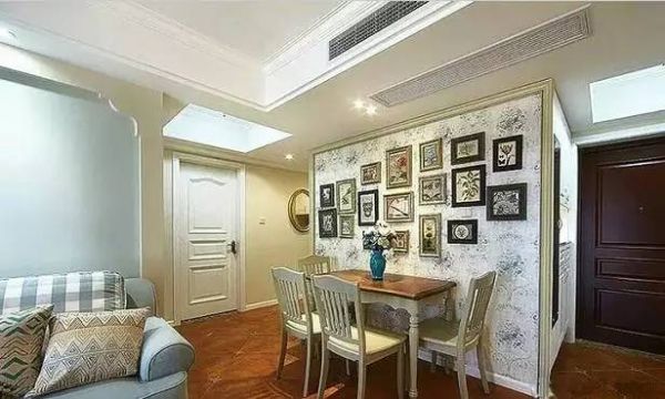 客厅旁边就是餐厅,业主特地花心思在餐厅墙上排列了一整面的照片墙。