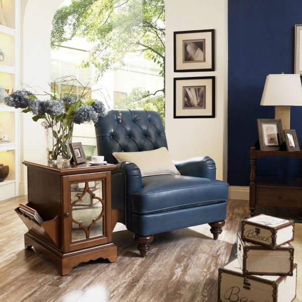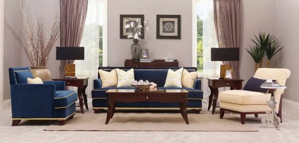 蓝色的背景下,与同色系的家具相互辉映,清淡而平静,不会过度的喧闹,也不会过度的冷峻,浓郁的蓝色的填补,如同是清水中滴入了清香的徽墨,在迅速晕染之下,使得优雅分子无处不在,有张有弛的布置,让整个房间凸显大气尊贵。
