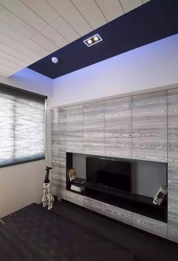 ▲客厅两侧安装了高柜,整合了收纳影音机等设备,避免过多设备外露带来的凌乱感。对于客厅来说,收纳是关键。