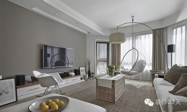 ▲ 整体是灰色和白色的主调,硬装以灰为主,软装点缀白可以方便更换和清洗,打扫也方便