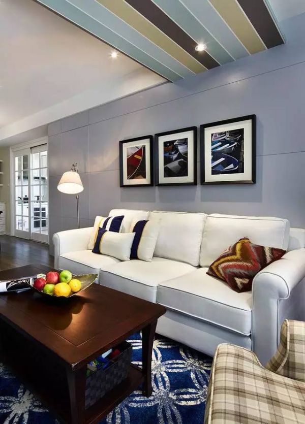 帆船迎风出航,湛蓝的地毯,明亮的采光,这一切一切,都将这个家打造成自然舒爽的格调,让人身处其中便能感觉到轻松写意,如海与船般的自由飘荡!