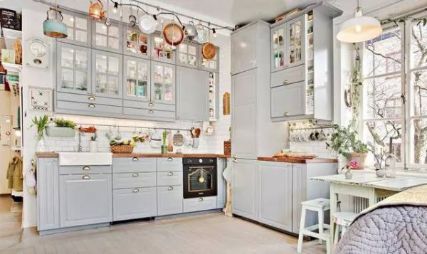 横梁上搭架,勾起主人心爱的锅碗瓢盆,既完美收纳,有赏心悦目