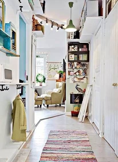 走廊角落粘贴主人喜爱的鸟兽贴纸,与文艺摆件一同,构成一面文化墙