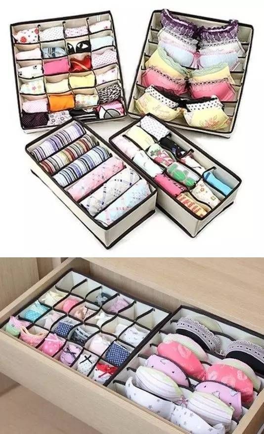 」对很多女性来说,内衣的存放是个伤脑的大问题。可以这样做:将内衣叠起来,并排放在分格的抽屉里,保护内衣不会变形,取用方便,而且节省空间。
