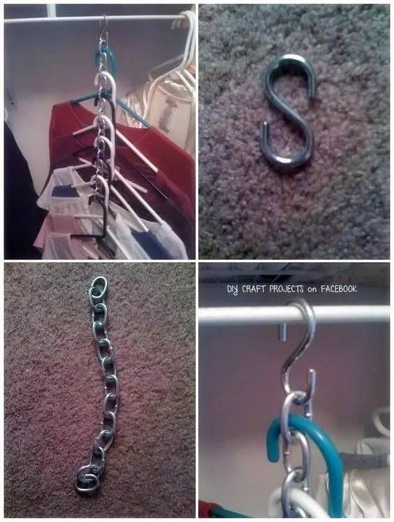还有一种省空间的方法,比易拉环更实用。只需要一个S形弯勾,一条铁链就能解决,随便你挂几件衣服,只要最上面的衣架能够承受住就行。
