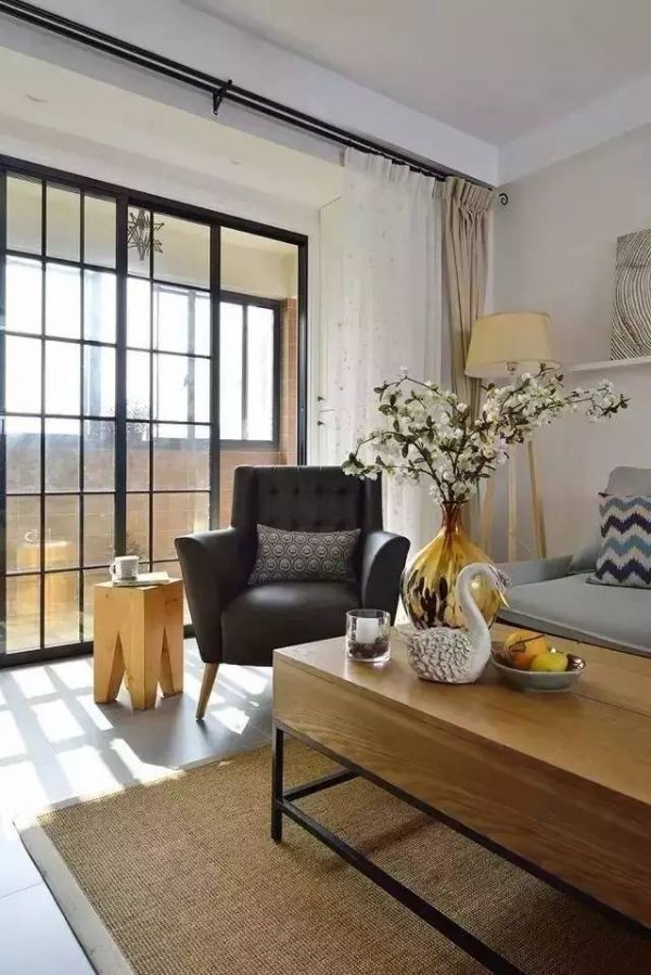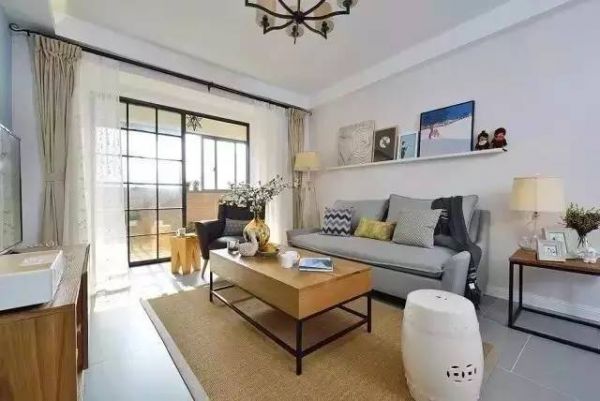 ▲临近阳台,自由充裕的阳光散漫进来,整个客厅被点亮了。 北欧风的灰布沙发和木质桌柜,洁白墙壁上设置一条搁板,摆放起来有时比悬挂更有个性。