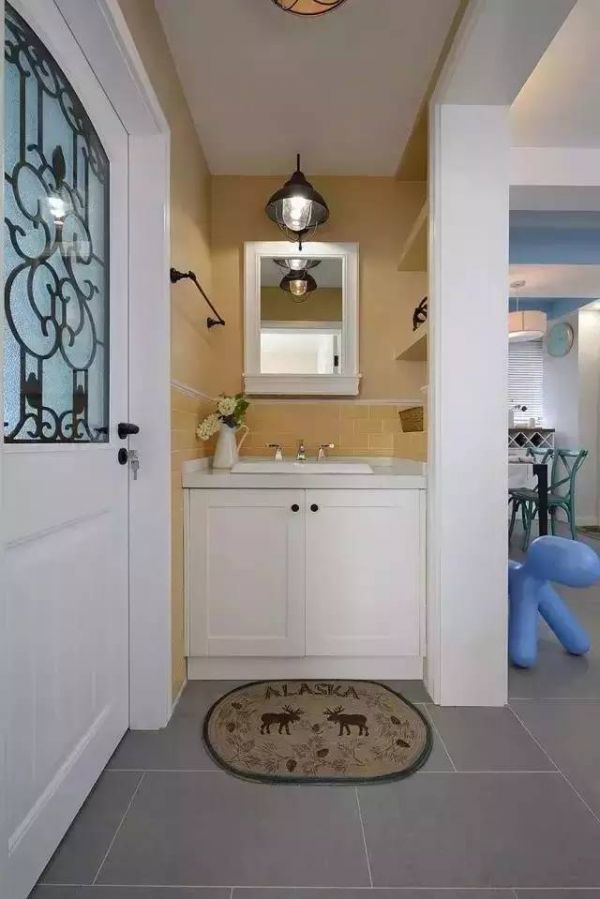 ▲洗手台独立于外,干湿分离做的很彻底。地毯的“Alaska”,蛮有情趣的。
