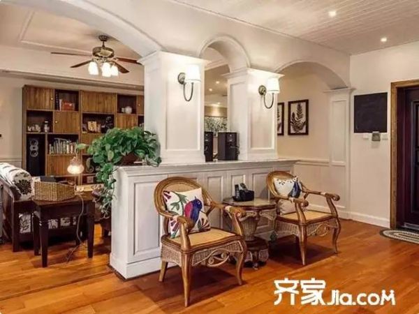 家具精美的轮廓完美的勾勒出淳朴自然的美式风格, 不论是匠心独运的沙发,还是古色古香的储柜,都让客厅综合着硬朗的气质,诠释出复古的韵味。