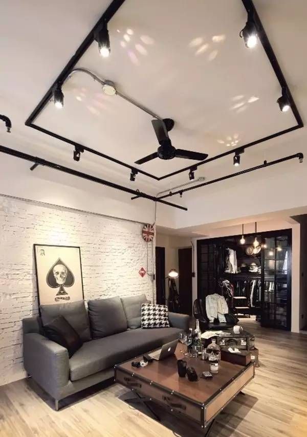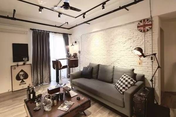 ▲原本老房子就存在的红色消防管路,设计师整理后作为客厅轨道灯,运用Loft标准工业风元素,俐落简约。
