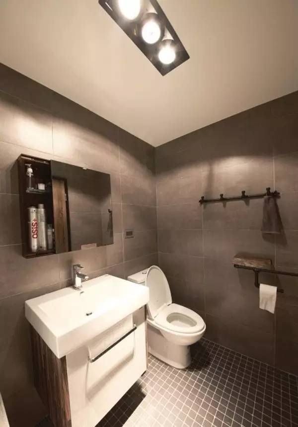 ▲板岩砖壁面、消防铁管挂勾,简洁中不失个性,以灰阶低调传达最舒适的存在。整体看起来还是很舒服的,干干净净的灰色地带。