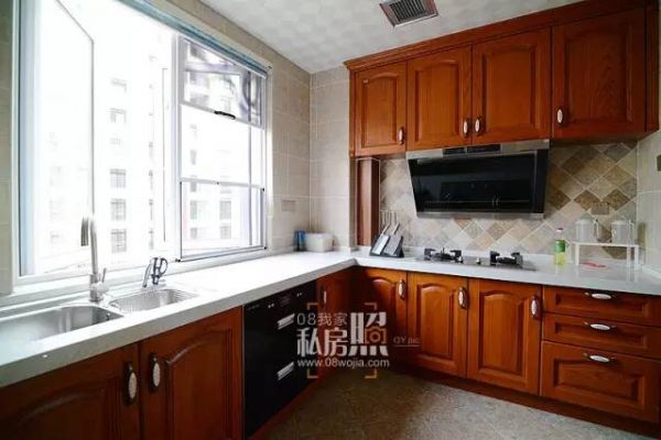 宽敞的厨房,窗外一览无余的是小区绿色风景,