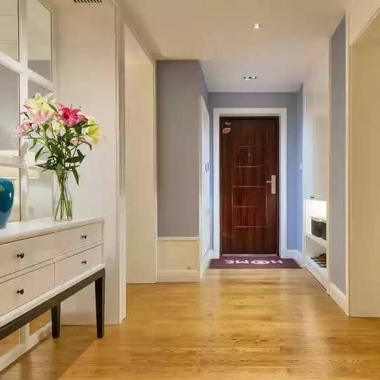 “ 推开梦想之门,走进魔法天堂 ”------原进门左手边就是厨房门很突兀,便改其位置,原门处巧设更衣柜,既使得入户空间和谐饱满,又方便进出门更换衣物,兼具美观与实用性。
