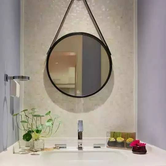“无心插柳,柳成荫 ”-------外卫干湿分离,干区墙面选贝壳马赛克,低调的奢华质感。亮点是梳妆镜,原定是用来装饰餐厅,偶有一次随手放于干区,突觉与贝壳马赛克墙搭配天衣无缝,浑然天成。