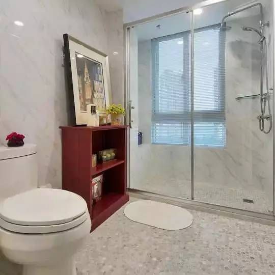 “举重若轻,化繁为简”-------将湿区飘窗台拆去,增加淋浴的面积,卫生间更显宽阔净朗。
