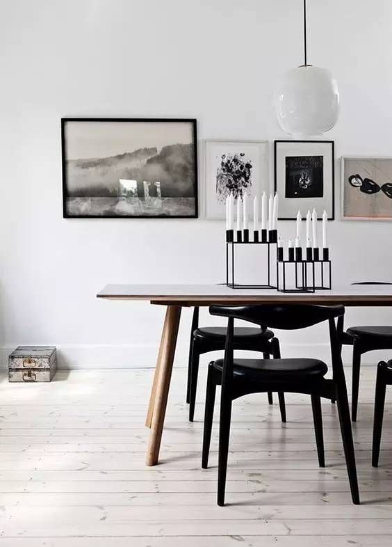 木色餐桌+黑色地板
