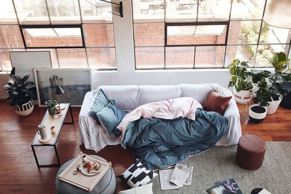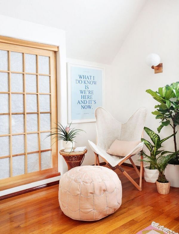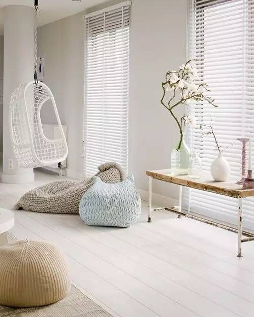 搭配藤艺吊床、棉麻织物榻榻米