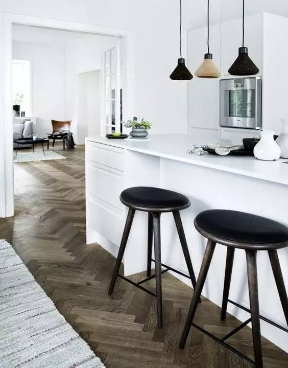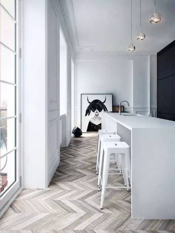 白色空间深棕地板会缓和室内