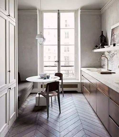 地板衬托了白桌椅