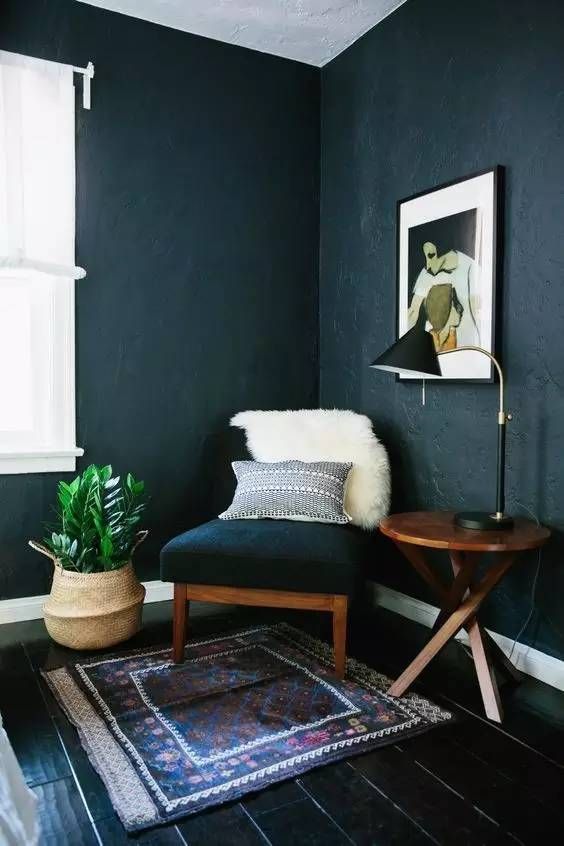 白墙+黑色地板