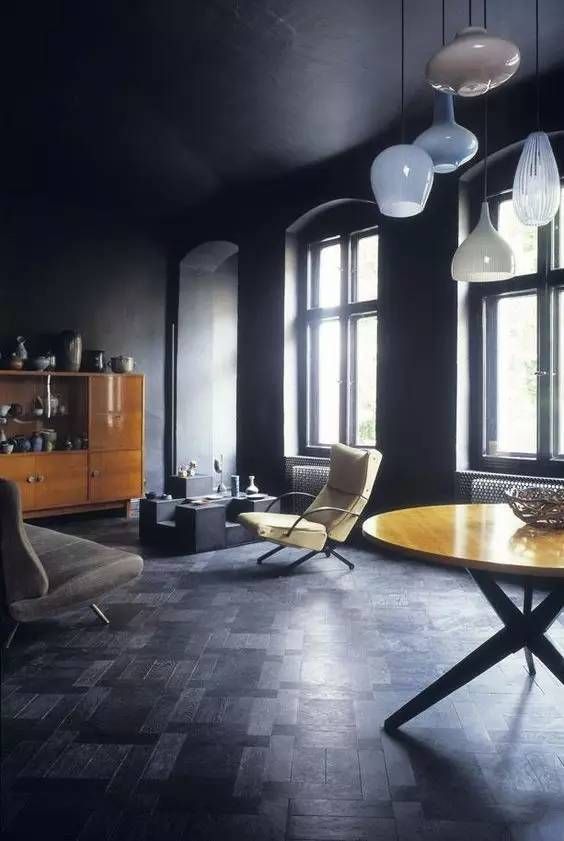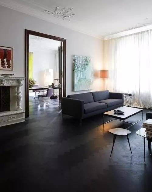 黑色地板搭配白色空间经典组合