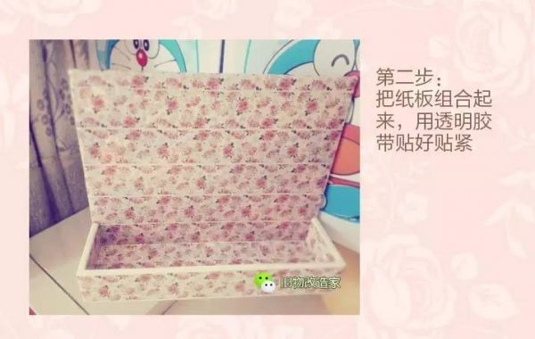 第二步:把纸板组合起来,用透明胶带贴好贴紧