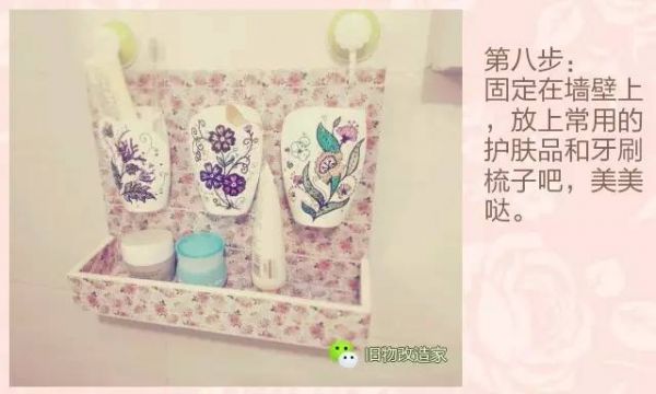第八步:固定在墙壁上,放上常用的护肤品和牙刷梳子吧,美美哒。