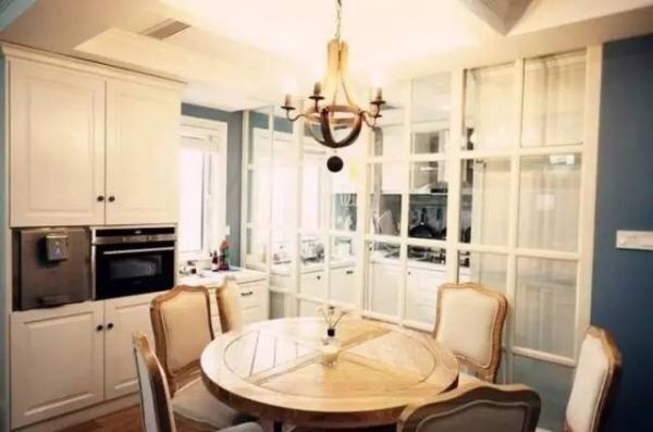 虽然有些不伦不类,但半开放式厨房在最大限度隔离油烟的前提下,也最大限度的保留了开放式厨房里外互动的便捷。
