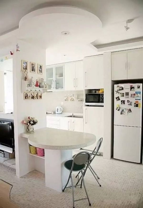 比如这样 ▼ 方便的传菜口,还可以收纳不少零碎,放两个高脚凳也是吧台