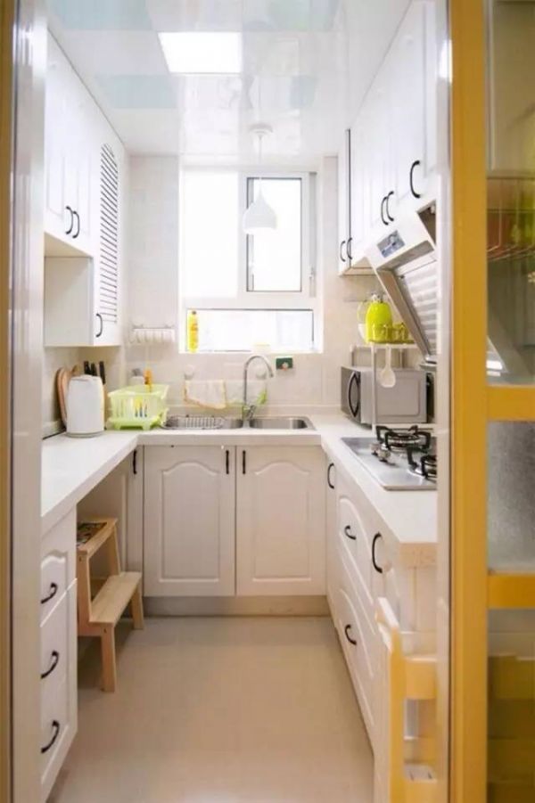 1、保险的白色厨柜,搭配干练的细条黑把手;