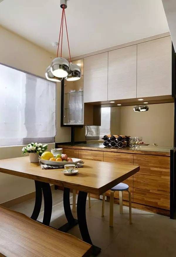 4.吧台餐桌面积刚和好,目测进深80-100cm的桌面方便里外同时使用,铁板餐厅既视感……