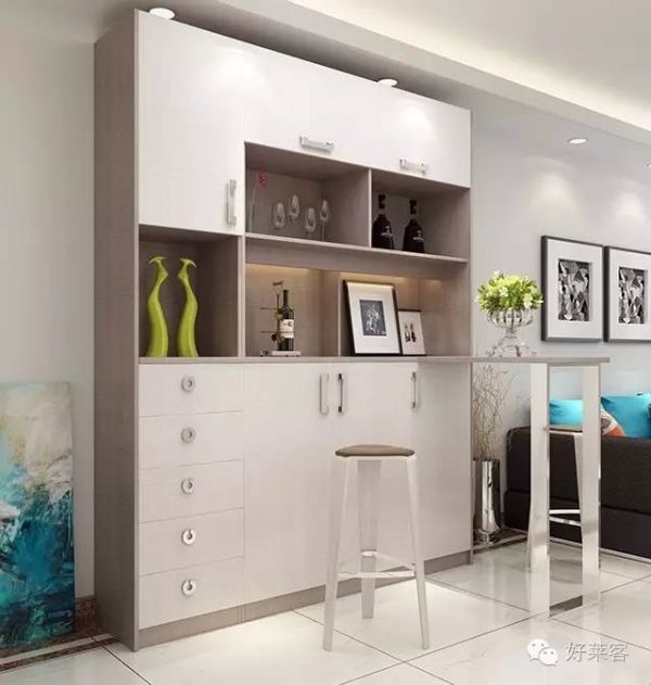介绍了客厅,哪能少了餐厅!客餐厅之间没有隔断,但彼此互不干扰。沙发一侧便是餐厅,在适当的位置搭出一方吧台,就餐品酒,一隅空间便可实现。
