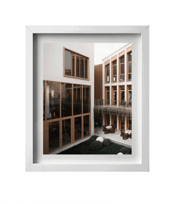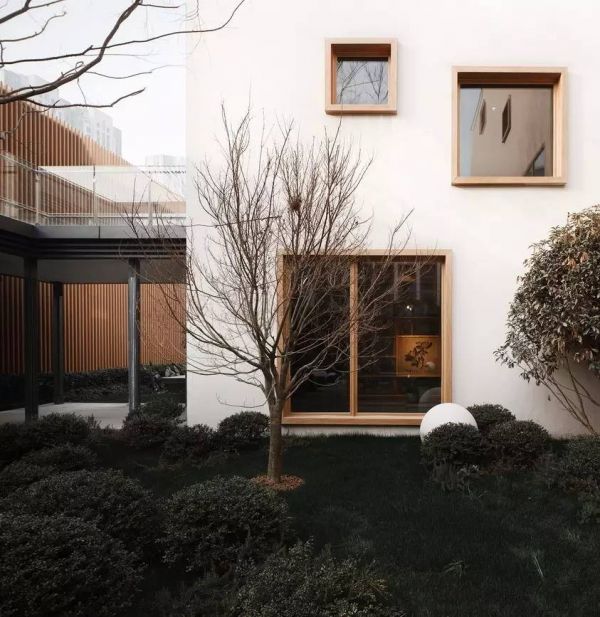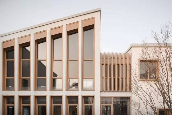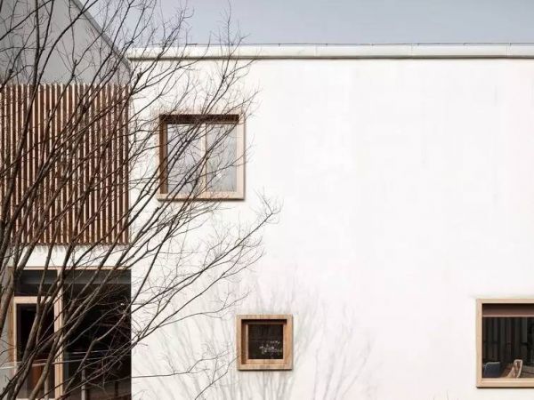 现代的线条语言贯穿了整个设计,同一种语言下,建筑师用不同方式细腻搭配材料,更多的发挥材料本身的属性。建筑整体外立面利用白色涂料和玻璃作为对比,强化建筑体量的纯粹性,简洁而不简单。窗洞口设计中结合了暖色调的木色格栅和窗框,细部雕琢上体现了建筑细腻和亲切感。