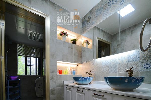 向右,则是风格不羁的卫生间。这是女主人最得意也是最喜爱的地方,也是投入最多的地方。自己的家,都是自己的心头好。包含蓝色的墙砖与面盆,与家的主线遥相呼应。