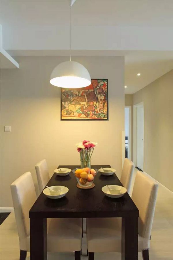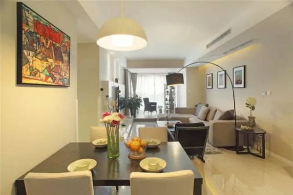 客厅是主人品位的象征,在沙发背景墙没有过多的修饰,墙面是暖色的乳胶漆加上简洁的装饰画。