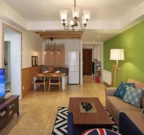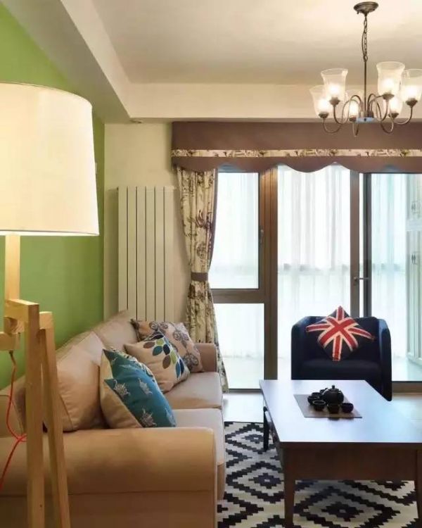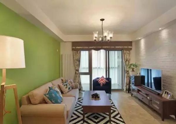 ▲ 整体上,选用了木质家居,温润大方。但又想给客厅添加一些跳跃活泼的感觉,所以特意刷了一面绿色墙面,显得清新自然。