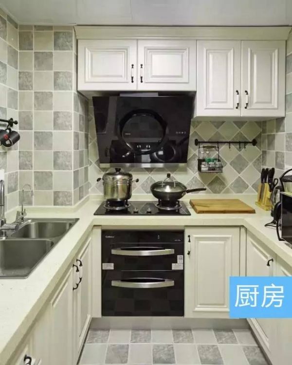 ▲ 厨房很小,但足够了!选瓷砖和选橱柜时都以简约为主,能装柜子的地方都装上了柜子,尽可能的增加收纳空间,不然东西全放在台面上,看上去太乱了!但橱柜多了,原本就不大的空间,看上去就更加拥挤了!
