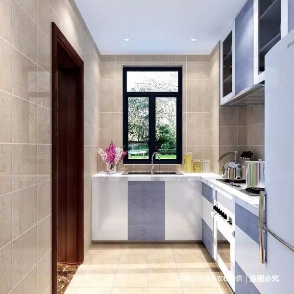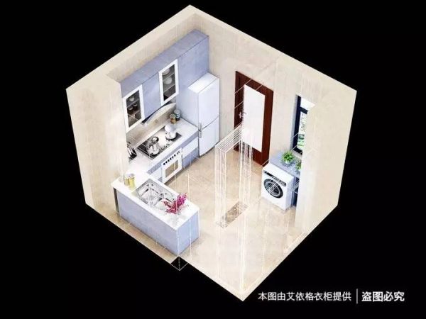 紫色高贵、白色洁净,不规则的色块拼接让中式橱柜更显时尚,上层玻璃柜门方便快速找到急需的物品,窗户送来阳光,给厨房带来充足的采光,洗衣房靠着窗户,让衣服多点阳光的味道。