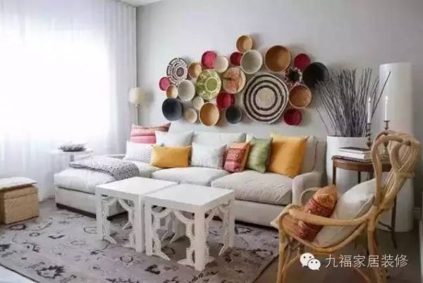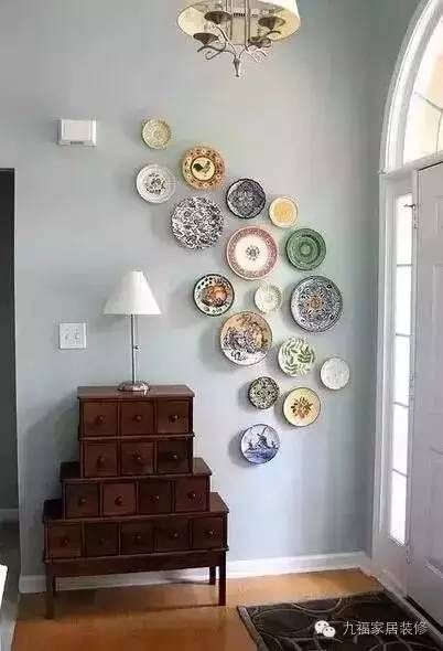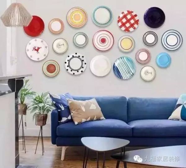 除了照片墙以外,现在又流行新的墙面装饰创意,那就是挂盘墙,把各式各样图案不一的盘子挂在墙上,用作装饰,也别有一番风情。