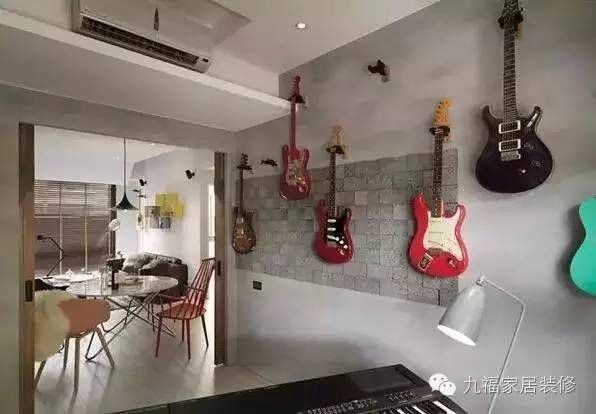 除了照片跟盘子,只要是你喜欢的,都可以上墙,关键是个性。贴纸、吉他、混搭,随你喜欢。