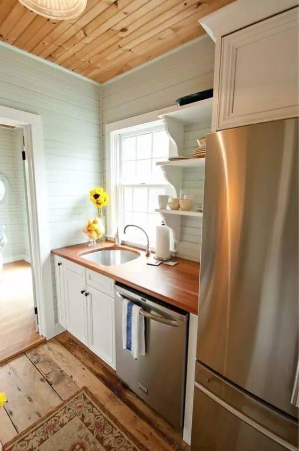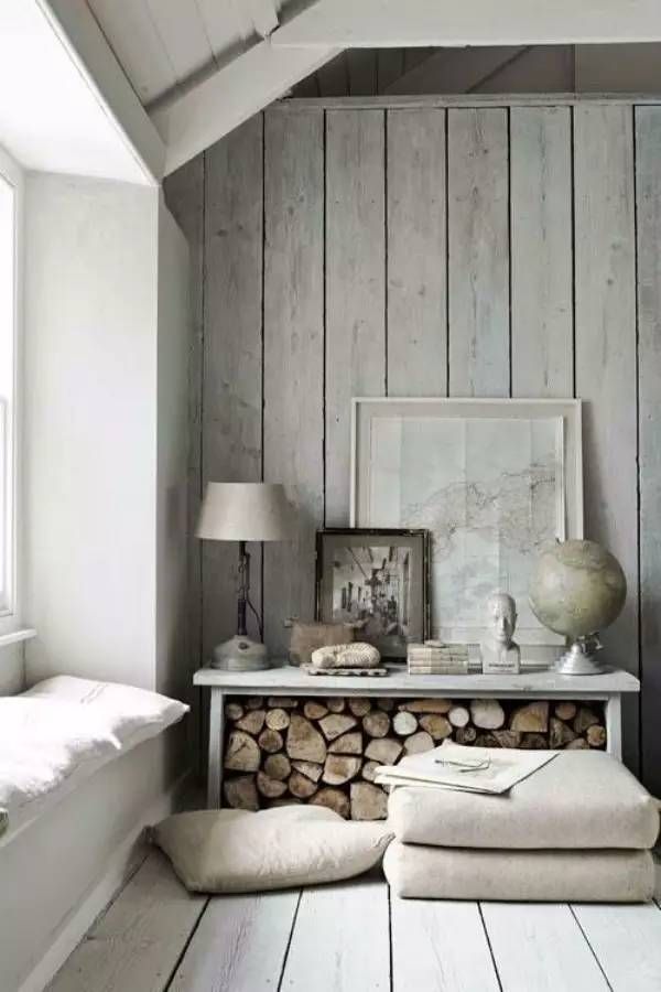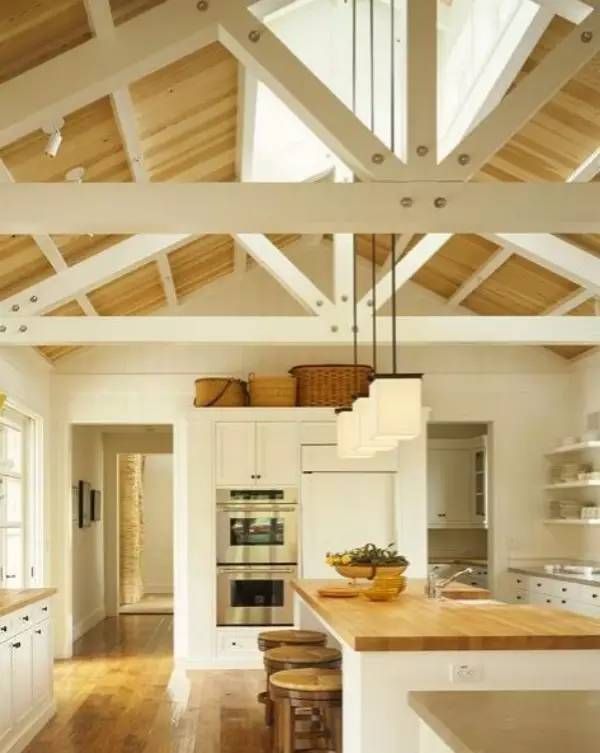 上墙还不够,地板还可以上天。在天花板铺设地板,房子显得更有设计感,而且保持了视觉上的一致,给人一种浑然天成之感。