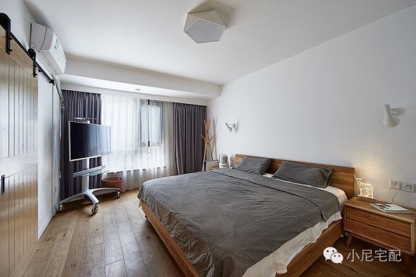 ▲原木搭配高级灰,卧室空间简单设计,没有过多的赘饰;
