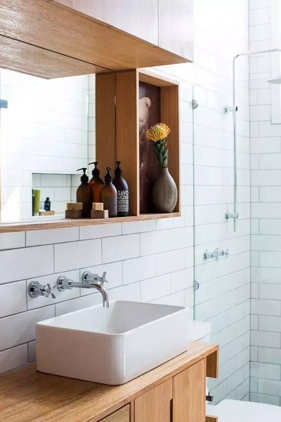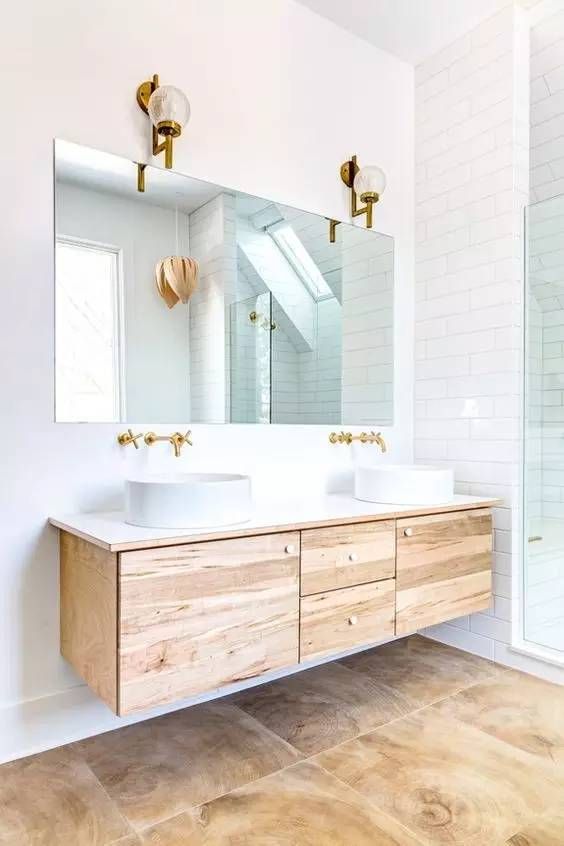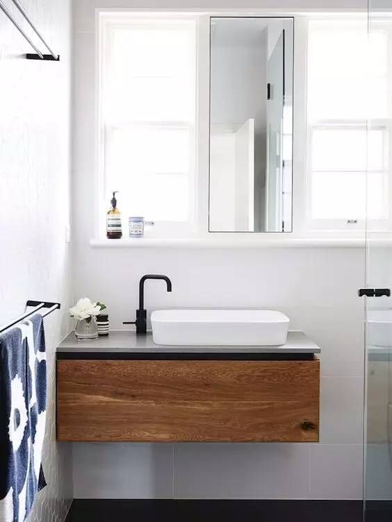只用木色,就能把洗漱区玩儿出花!