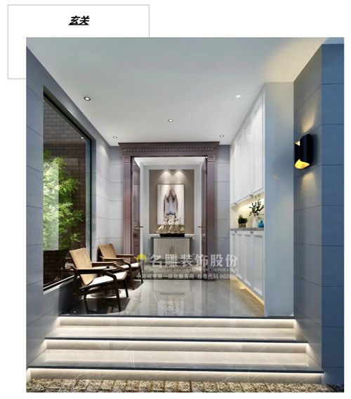 室外清新绿植,映衬着温润洁白的玄关收纳柜