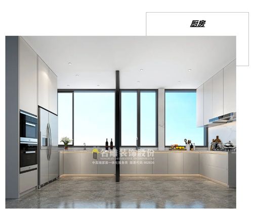 开放式双推拉门增强厨房与餐厅的互动性,整体空间更为开阔。