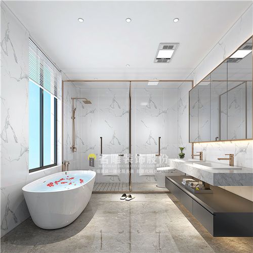 主卫干湿分离,双台盆设计,金属线条贯穿于空间,典雅大方。