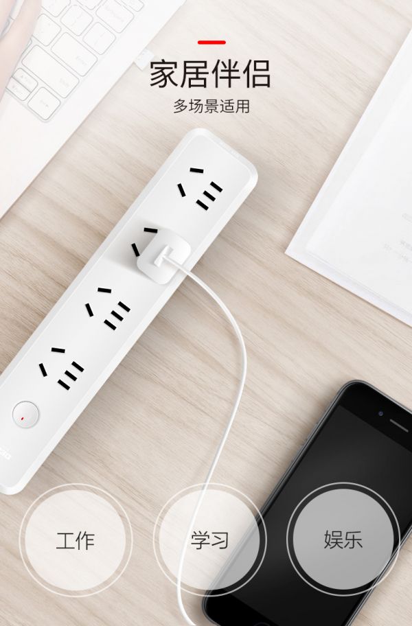 在整体的把控上,“小红点”系列排插的每一个细节都是匠心精神的体现,用细致入微的设计打造质感生活,小巧易握的尺寸匹配多插头设计,不过分要求大,也不刻意追求小,不仅为平时的使用和携带提供方便,同时也满足了家庭多插头使用的需求,合理分布插孔,不拥挤也不简单,不论是工作学习,还是全家娱乐,都能很好的适用于各种各样的场合,提升生活的舒适程度。