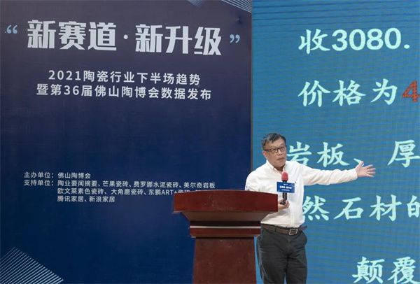 佛山市陶瓷行业协会秘书长尹虹针对陶瓷行业现状以及未来趋势的深度剖析,为大家带来了《2021陶瓷行业上半场总结与下半场趋势探索》的主题演讲,并且现场分享了对2021下半场最新行业趋势的预测。