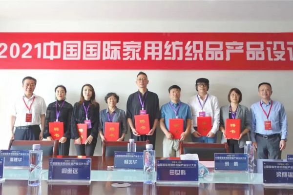 评审会现场,中国纺织工业联合会副会长、中国家用纺织品行业协会会长杨兆华,南通市人民政府副市长潘建华为评委们颁发了大赛聘书。
