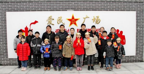 夫妻俩和村里的孩子们合影